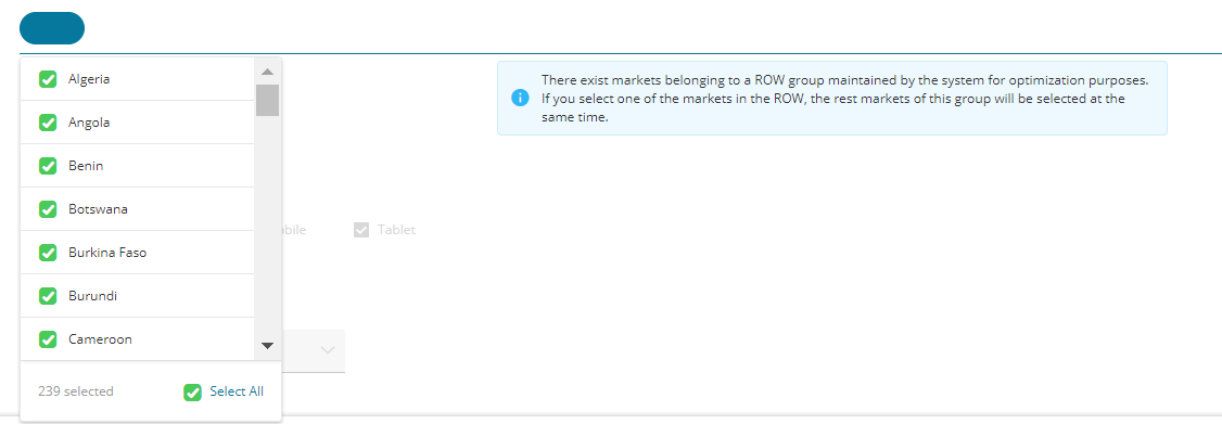 Note: Please pay attention to the market which belongs to a "ROW" market group: if you select any market in this group, the other markets under this group will be selected at the same time.
